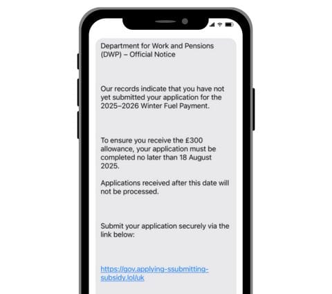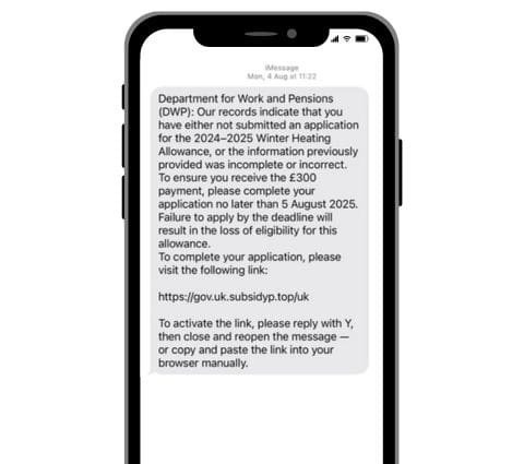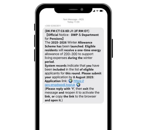 These scams are designed to look official, often mimicking DWP branding and tone. While they frequently target individuals who may be receiving benefits, such as pensioners, disabled claimants or those on low incomes, they are sent using mass-texting tools and can affect anyone.